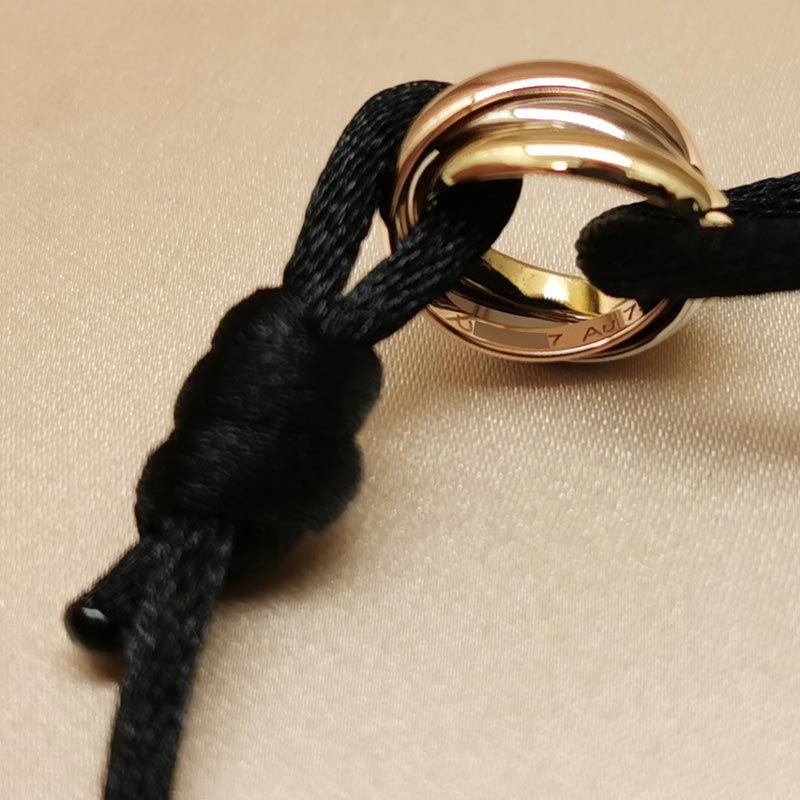 Cartier Trinity bracelet, small model, 18k tri-colour gold, black cord