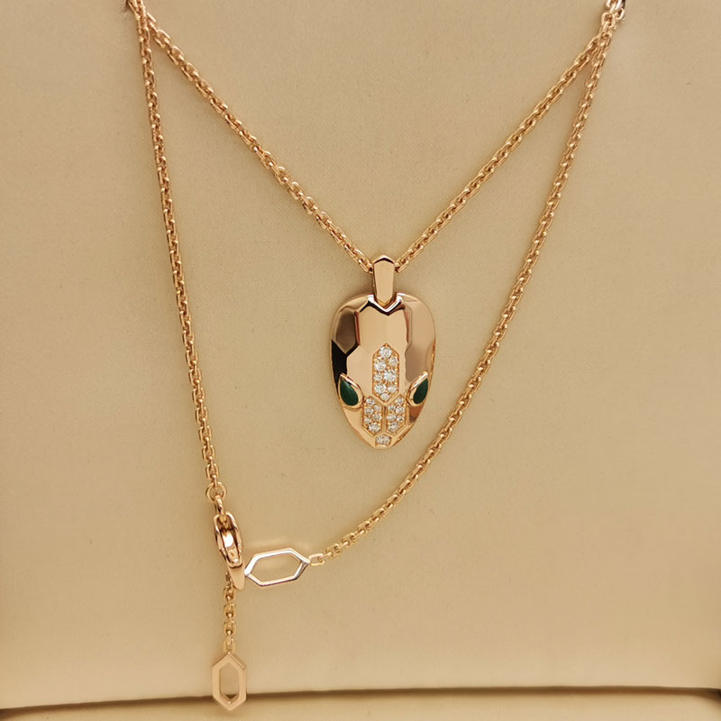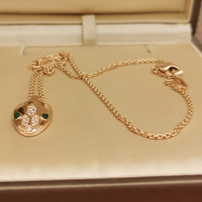 Bvlgari Serpenti necklace 18k rose gold, diamond, malachite