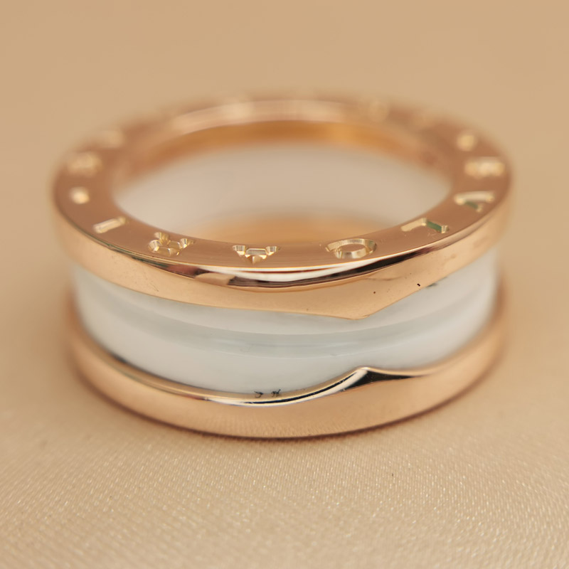 Bvlgari B.zero1 ring two-band 18k rose gold,white ceramic, 51