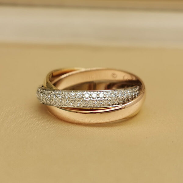 Cartier Trinity ring 18k tri-colour gold, 5 diamonds, 56